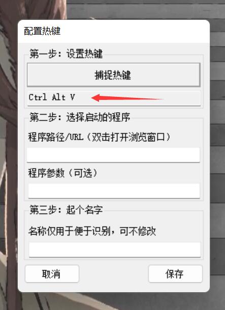 点击捕捉热键按钮,然后按下你要设置的热键组合,即会显示捕捉到的热键。