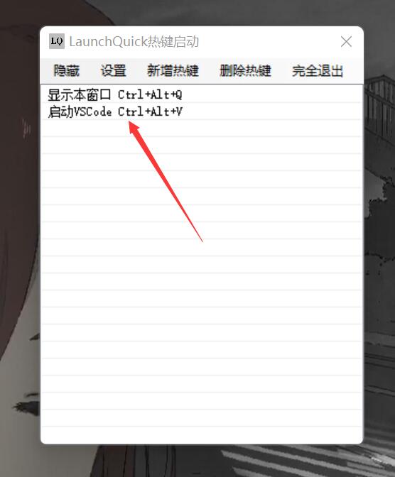 此时就可以看见热键列表中出现我们设置的热键了。左侧是设置的名称,右侧是热键。