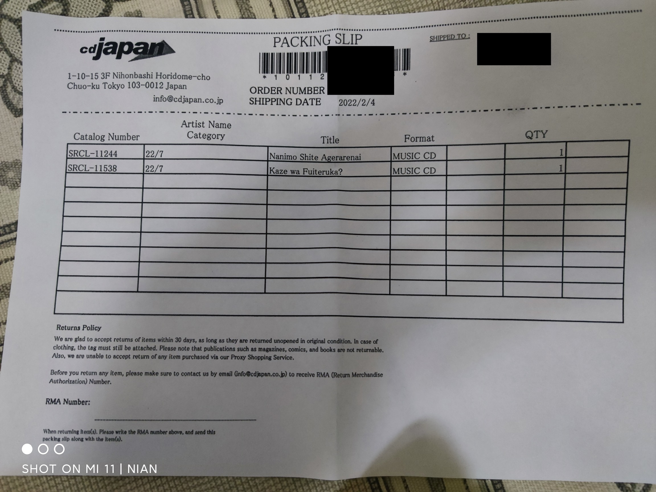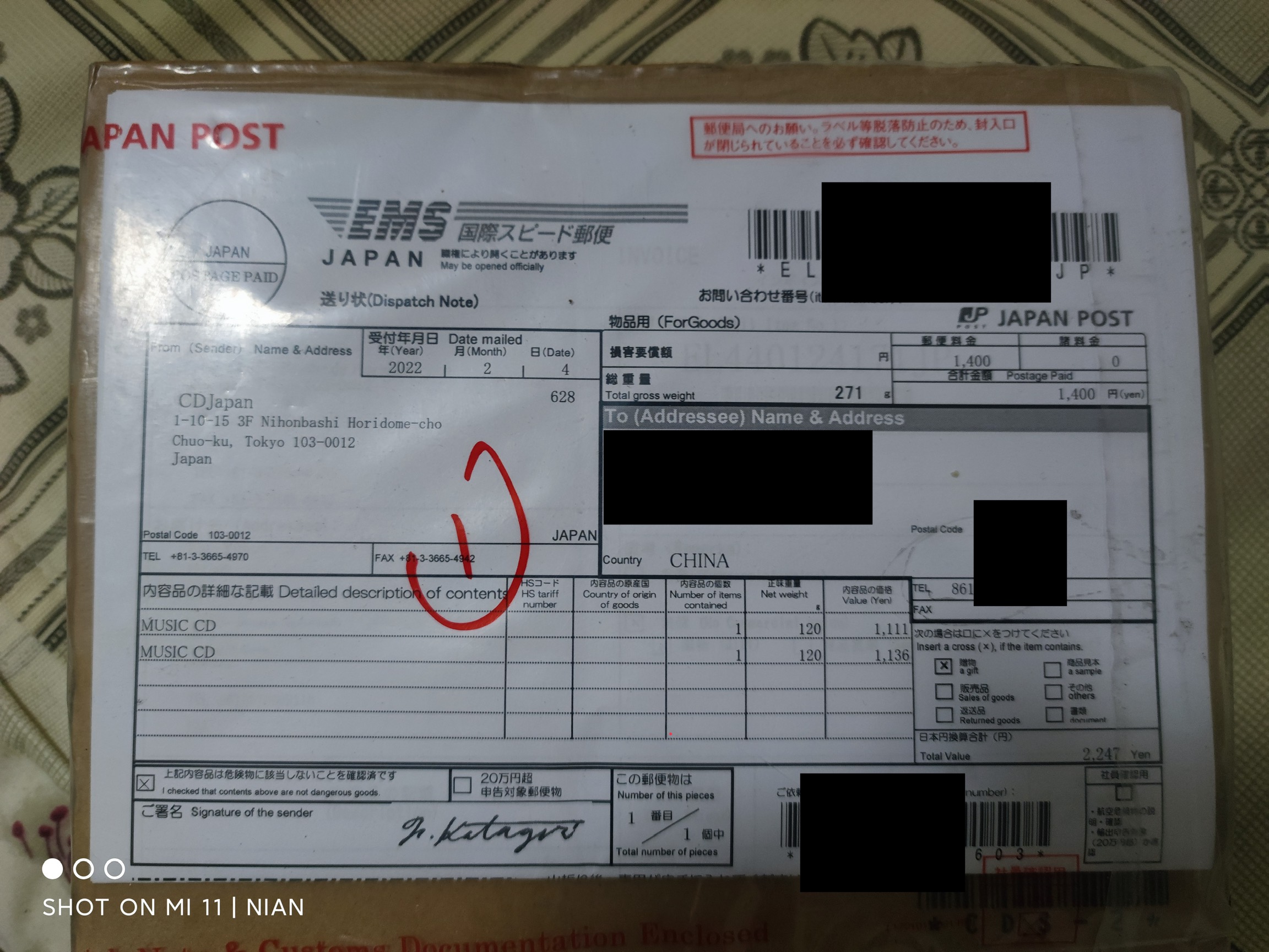 另外,cdjapan发货时会随包裹外面在塑料夹层里面的运单附上具体的商品价格清单,以便海关处理,这点给个赞。