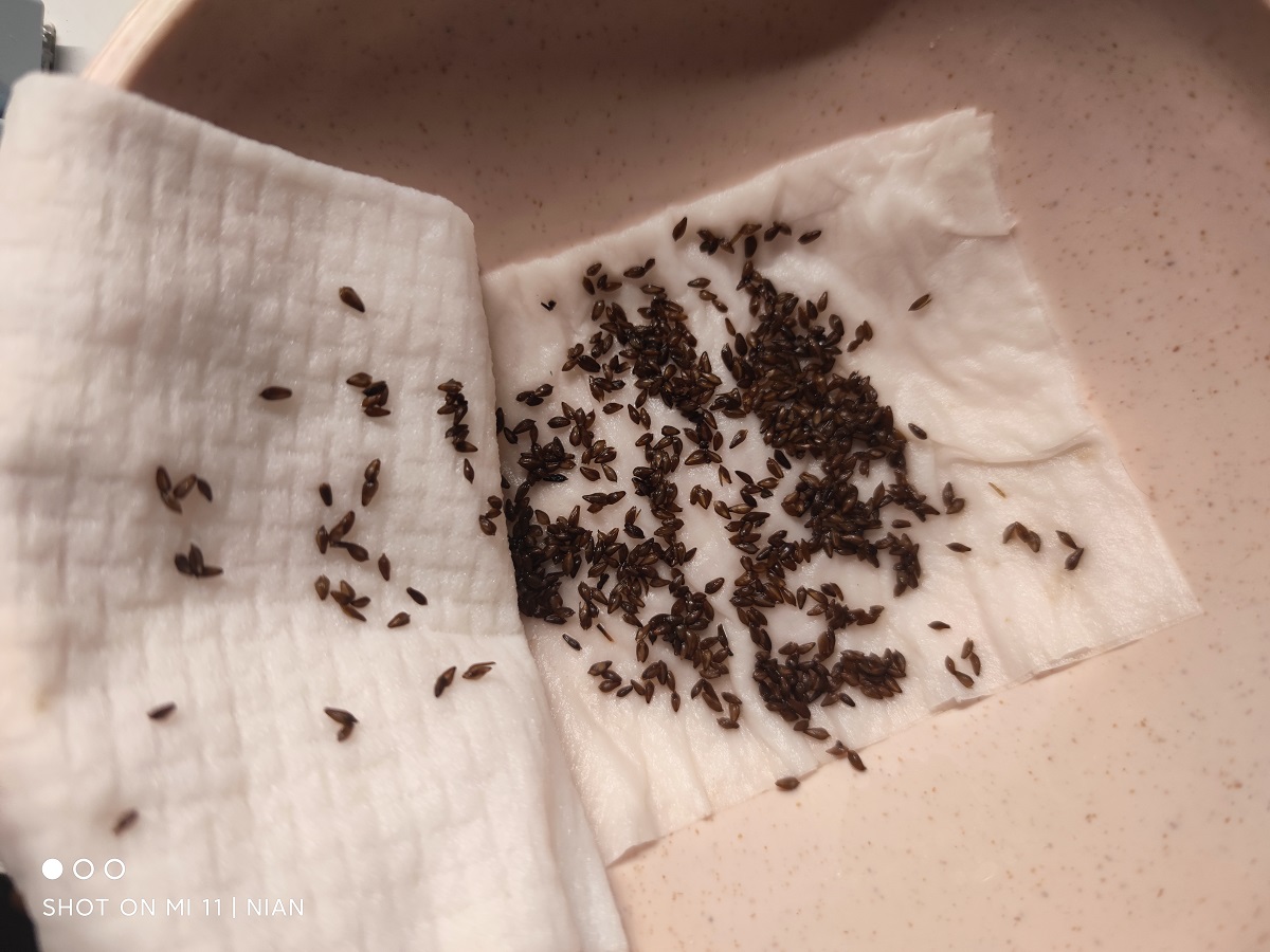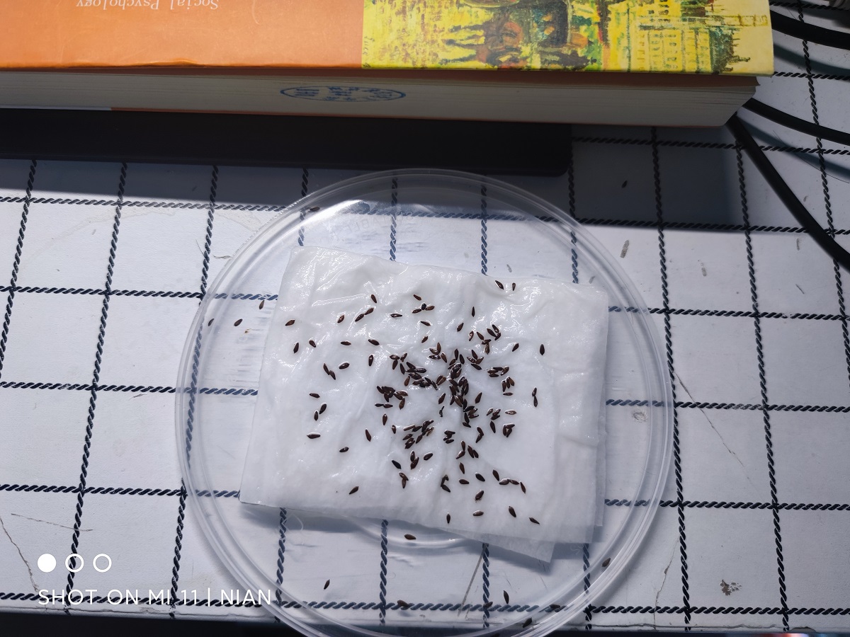 不久新种子到手,遂根据老师的建议,浸泡3h后用湿纸巾盖住,时不时浇点水保持湿润。