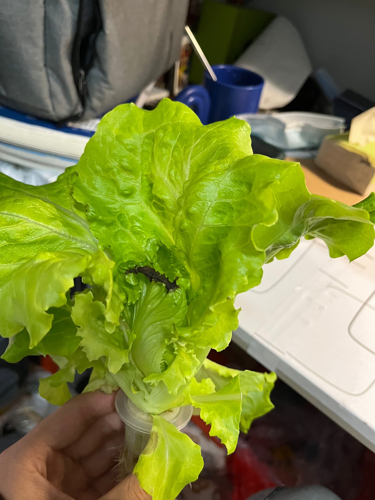 又又又又又一周后,菜长得太大了把整个箱子上方挤爆了,已经开始挡光了(悲